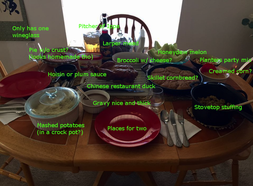 Nothing on that table looks appealing in any sense. Let us pray that she picked up better food this year.
