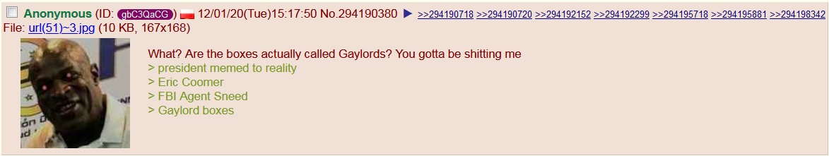I had to smile, chuckle and experience general mirth as I listened to the testimony about "gaylords."  I dealt with "gaylords" frequently in both my Military logistics job and in my Civilians logistics job;  "gaylords" are ubiquitous, but that was the first time I have heard them spoken of on a National Media platform.