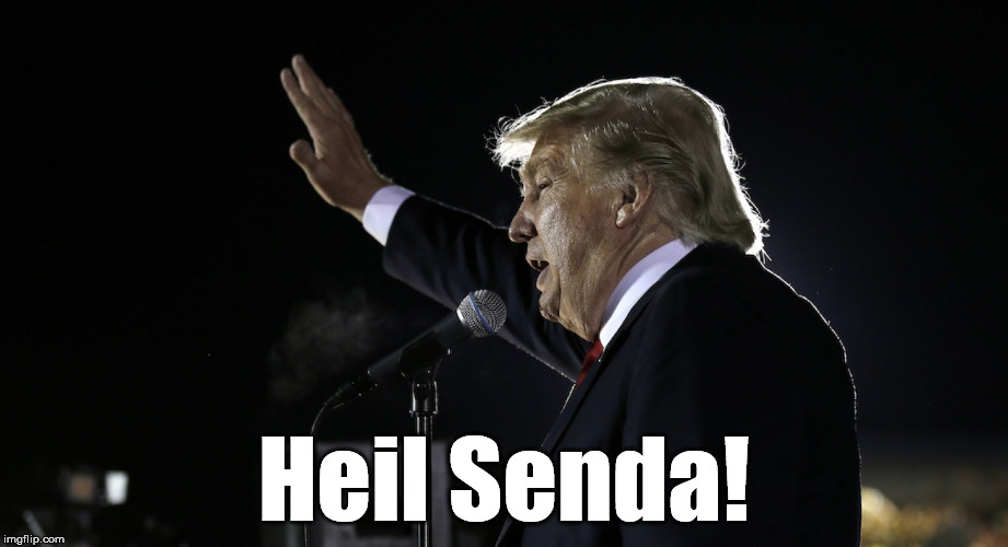 Senda: "Welcome to Falkenberg's Fortress.  When I call your name, please respond by saying, "Hail Senda.  Or if you are of Prussian descent, as am I, you may say, Heil Senda.  Rekcuf?  Rekcuf?  It's darker than hell in here.  Can someone please open a window and let some light in?  Rekcuf are you in here?  Rekcuf?  Will someone please open a damned window and let some light in?  Damnit, I want to hear some Heil Sendas!  Do you hear me?  Somebody open a damned window, let some light in and let's hear some Heil Sendas!