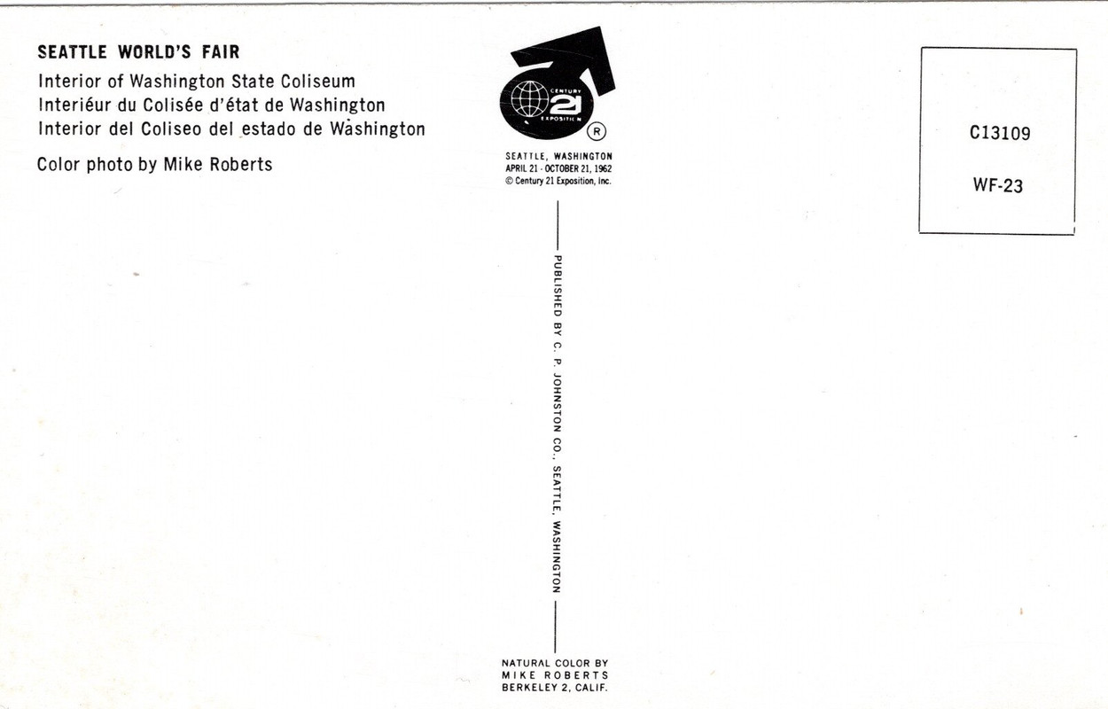 As I've mentioned before, I got to go to the Seattle World's Fair back in 1962.  I was just a 12 year old kid at the time, and perhaps it's for that reason that I have no recollection of being inside such a grand building.  Funny though, that odd sculpture to the right tugs at my memory receptors somewhat.  So perhaps I did step inside of the place after all.